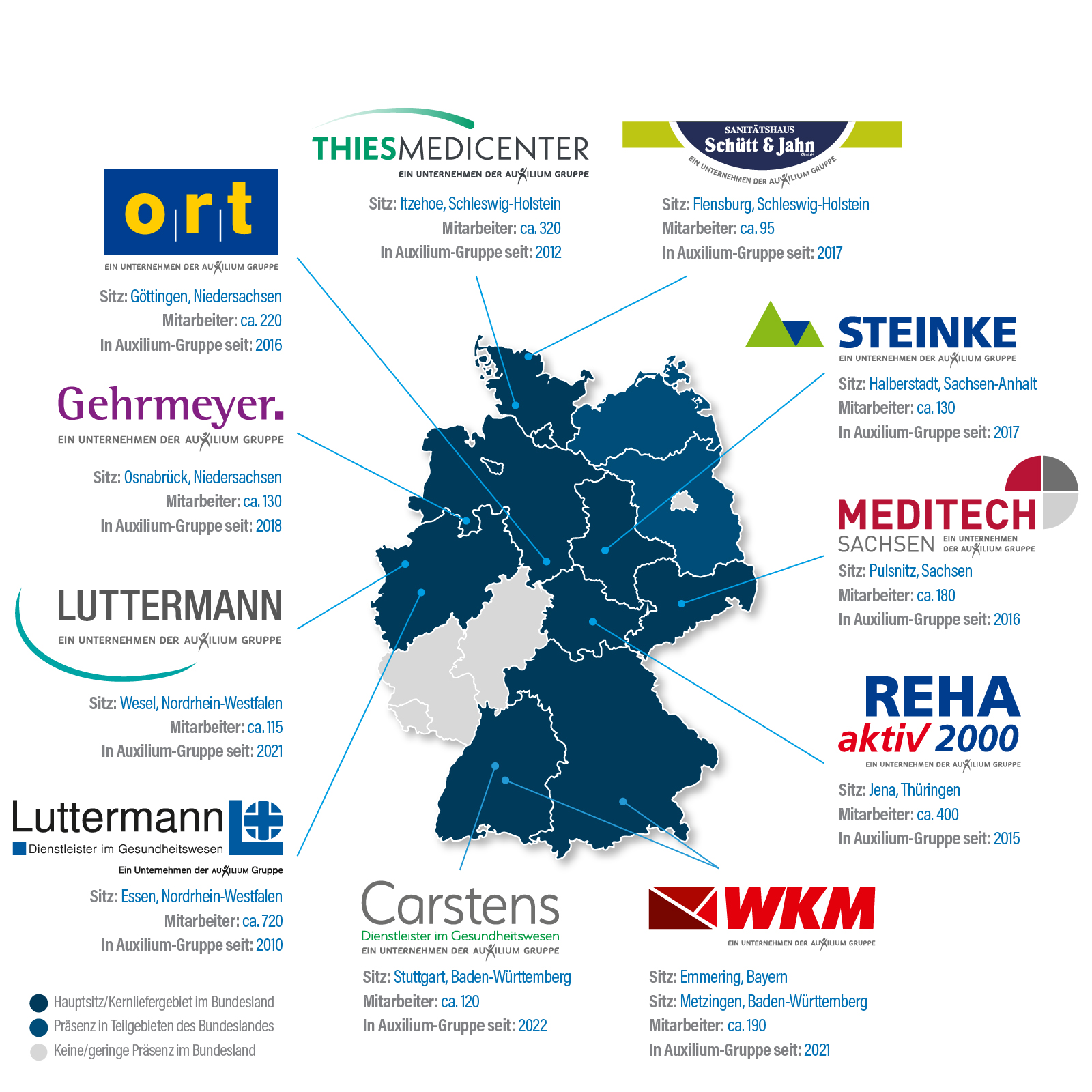 Gehrmeyer Orthopädie- und Rehatechnik GmbH, Luttermann GmbH, WKM Medizintechnik GmbH, Luttermann Wesel GmbH, MEDITECH Sachsen GmbH, Sanitätshaus o.r.t. GmbH, REHA aktiv 2000 GmbH, Schütt & Jahn GmbH, STEINKE Orthopädie-Center GmbH, ThiesMediCenter GmbH, WKM Medizintechnik & Sauerstoff-Therapie GmbH, SC SANITÄTSHAUS CARSTENS GMBH